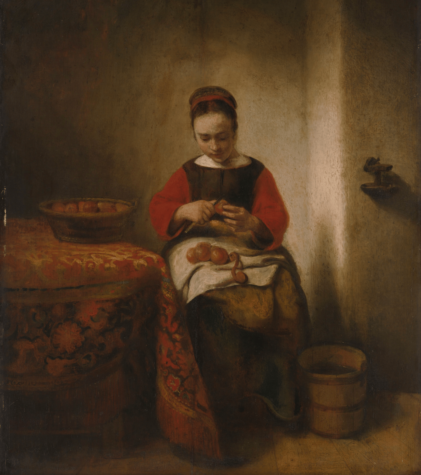 Nicolaes Maes: Young Girl peeling Apples